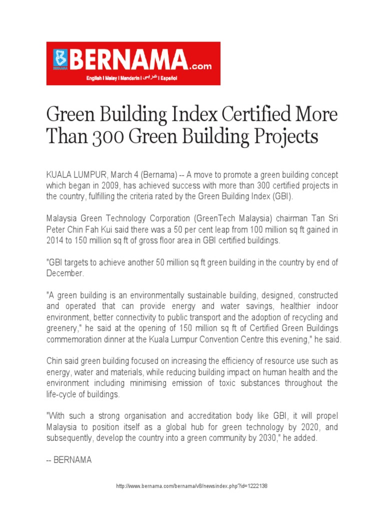 The Green Building Index rating system for Residential. Whether GBI is an efficient framework that can lead Malaysia towards its goal of.